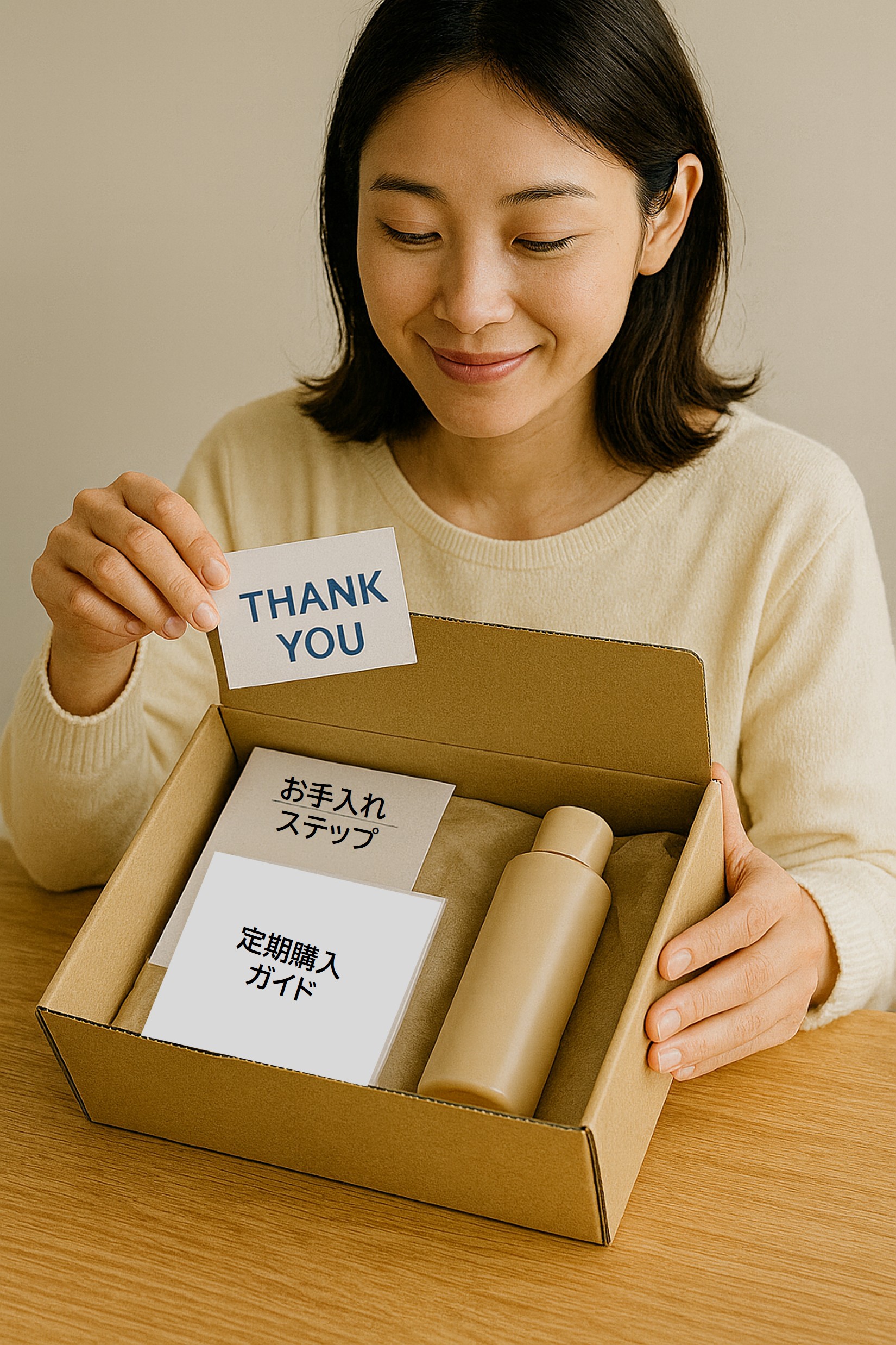 定期購入は単なる「定期的に商品を買ってくれるお客さま」ではありません。商品と一緒に、お手入れの情報や、商品そのものについてもっと深く知るための情報などを、十分に提供する必要があります。定期購入のお客さまにお届けするべきなのは、商品だけではありません。「商品にひもづく、体験や共感の価値」がとても重要なのです。