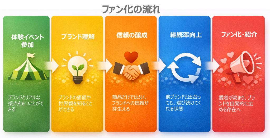 このようにして、お客さまに満足していただく体験型イベントには、内容の選定だけではなく事前事後準備にも気配りが必要です。「次も来たい!」と思ってもらうために、段階を踏みながら準備してみてください。