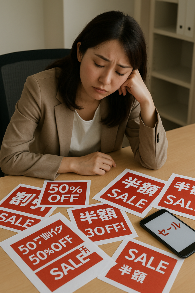 その場合はこれまでの販売施策を振り返ります。弊社の経験では、ターゲット層の異なるさまざまな媒体にランダムに新規獲得広告を掲載したり、大幅値引き価格で売っていたり。加えて商品コンセプトを訴えることもせず、商品の価値をないがしろにした販売施策を繰り返していると、お客さまは単なる「バーゲン狙いの集団」になってしまいます。