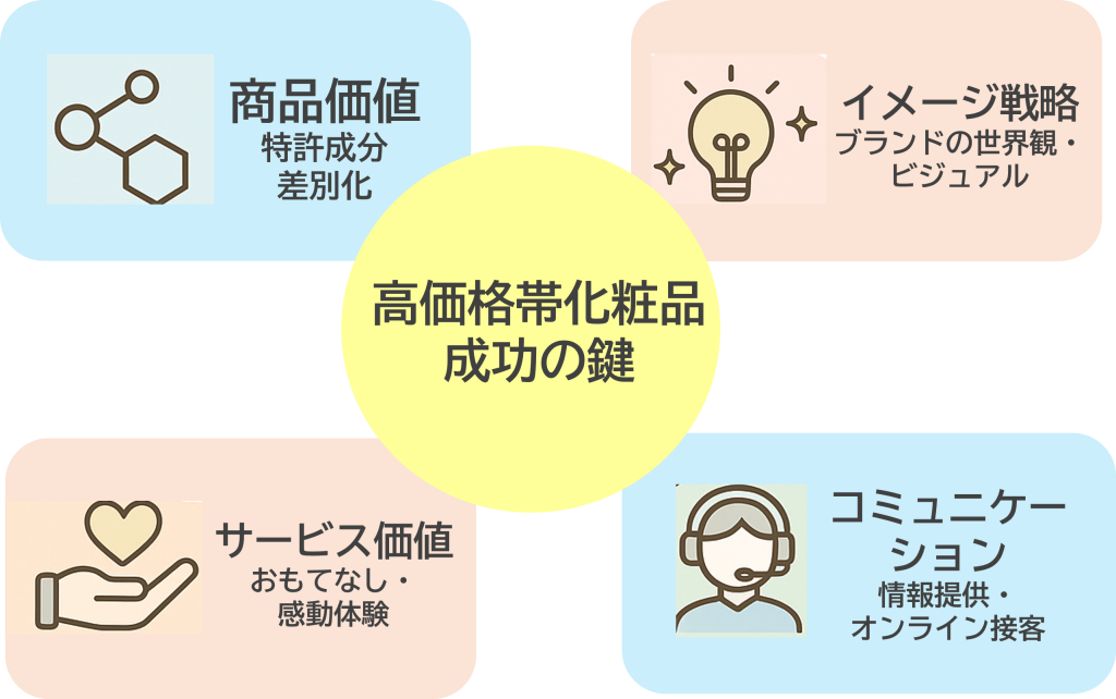 - 高価格帯化粧品-一般的なスキンケア商品の中でも、1アイテム2万円以上を超えるラインを指します。成分の希少性や処方の独自性、ブランドの世界観・体験価値など、価格以外の要素による付加価値が重視されます。 ↩︎