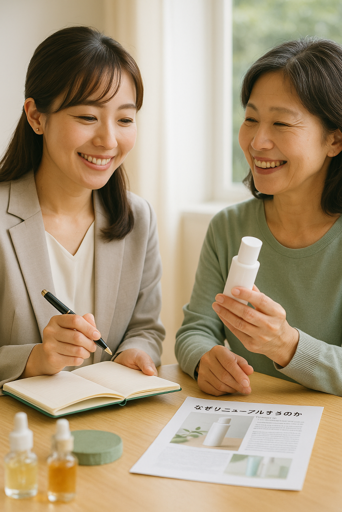 リニューアルは、自社の商品がお客さまの求めるものとずれていないか、を問い直す良い機会です。成分や処方をハイスペックに改良することも大切ですが、それだけはお客さまに受け入れられるリニューアルにはなりません。