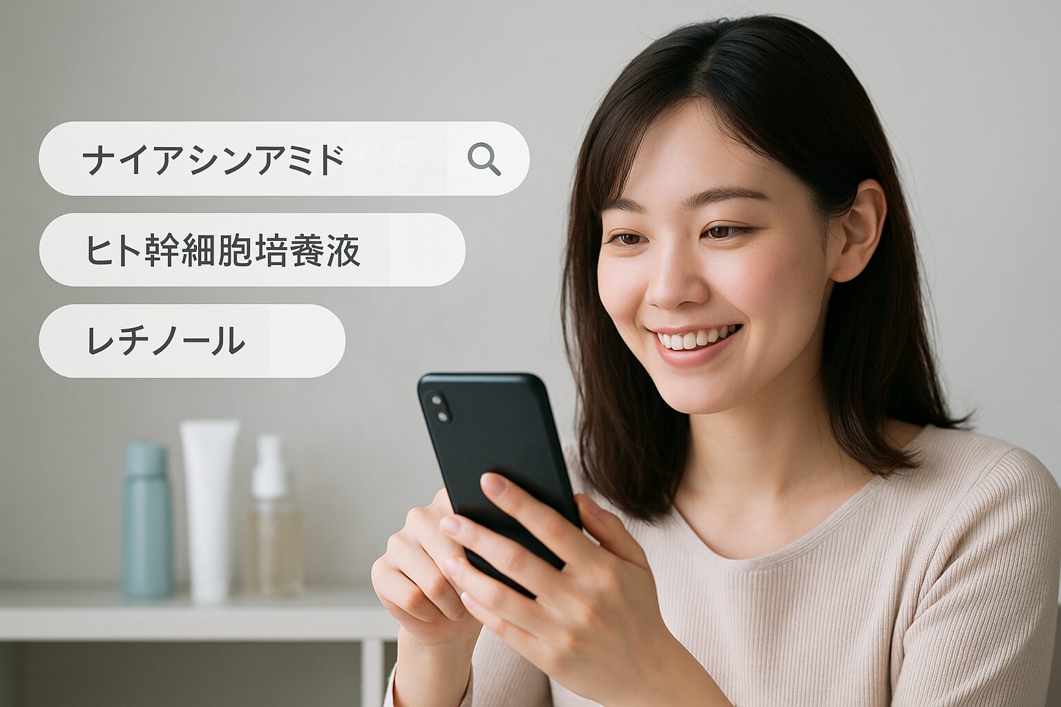 なかでも美容成分に関する認知レベルが顕著です。5年ぐらい前まではヒアルロン酸やコラーゲン、セラミドなどよく聞く有名な成分名は挙がっていました。しかし今日ではレチノールやアスタキサンチン、フラーレン、ナイアシンアミド、ヒト幹細胞培養液といった成分名が当たり前のようにお客さまの会話の中に飛び交っており、しばしばこちら側が圧倒されてしまうようなこともあります。