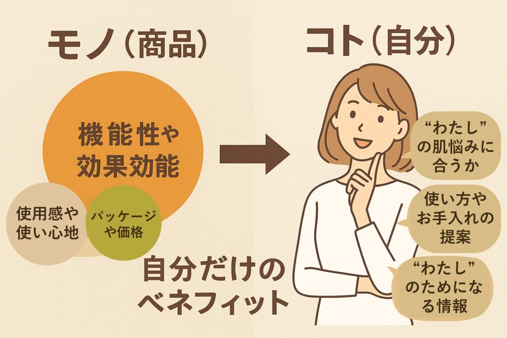 - ベネフィット―商品を通じて得られる、自分にとっての嬉しい変化や実感できる価値 ↩︎