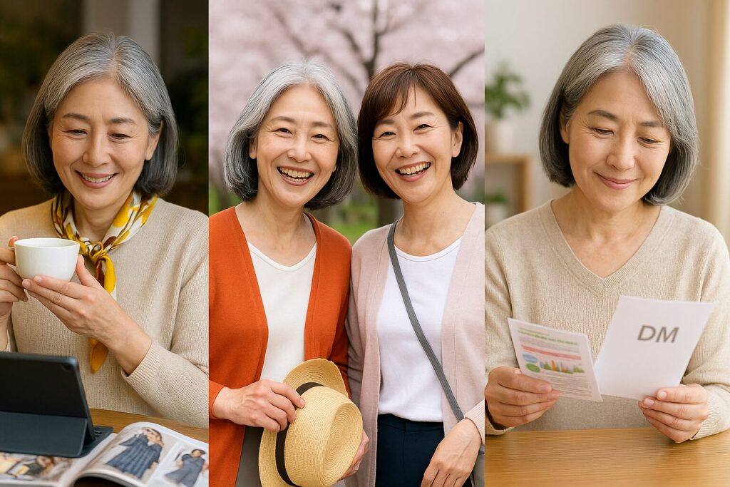 - アクティブシニア―50代~70代を中心とした、健康で活動的なシニア世代を指す言葉。趣味や旅行、ファッション、美容に積極的で、消費意欲が高いことが特徴です。従来の「お年寄り」というイメージとは異なり、自分のための投資を楽しむ傾向があります。 ↩︎
