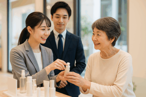 彼女たちの中にはレーザー治療を経験している人もいれば、美容にいいと聞けばすぐに新しい化粧品を試す人、美容のためにたくさんの健康食品を摂る人など、様々にチャレンジしている人が多い。しかもこれまで美容関係の仕事をしてきたとか、美容の知識が豊富だというお客様ばかりではない。ずっと専業主婦で子育てをしてきて、いま50代、60代を迎えたというような人々までが、多くの肌悩みを訴えアンチエイジング化粧品に熱い視線を送っている。