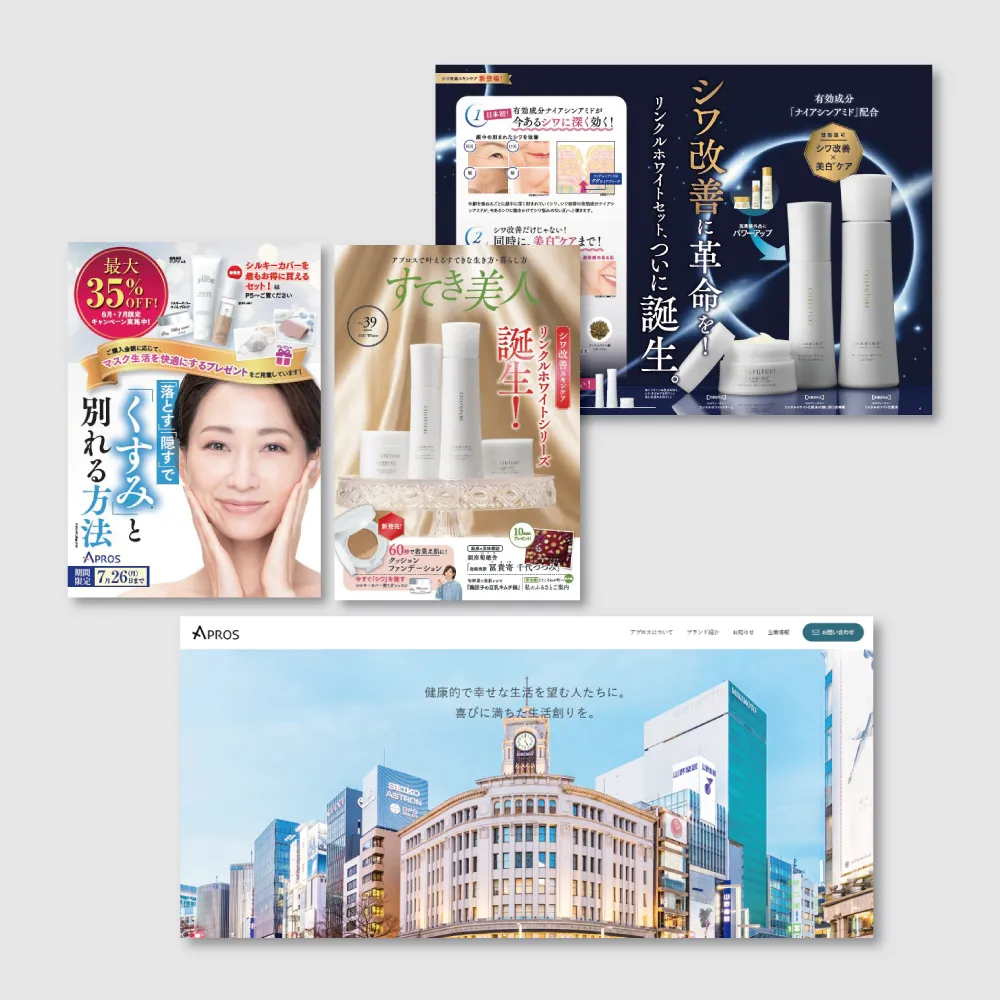 販促物は「きれい」なだけでは成果につながりません。フォー・レディーは女性ならではの感性とデータ分析を掛け合わせ、心を動かすツールを制作します。通販特有の情報誌やDMでは、「何を・誰に・どう伝えるか」を明確化し、ブランドの世界観と市場ニーズを結ぶ戦略的クリエイティブで「気になる」「試したい」「続けたい」気持ちを引き出します。