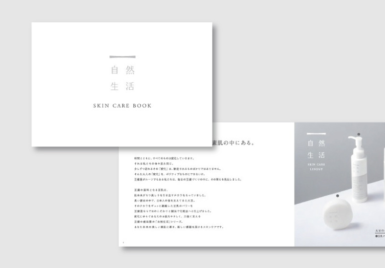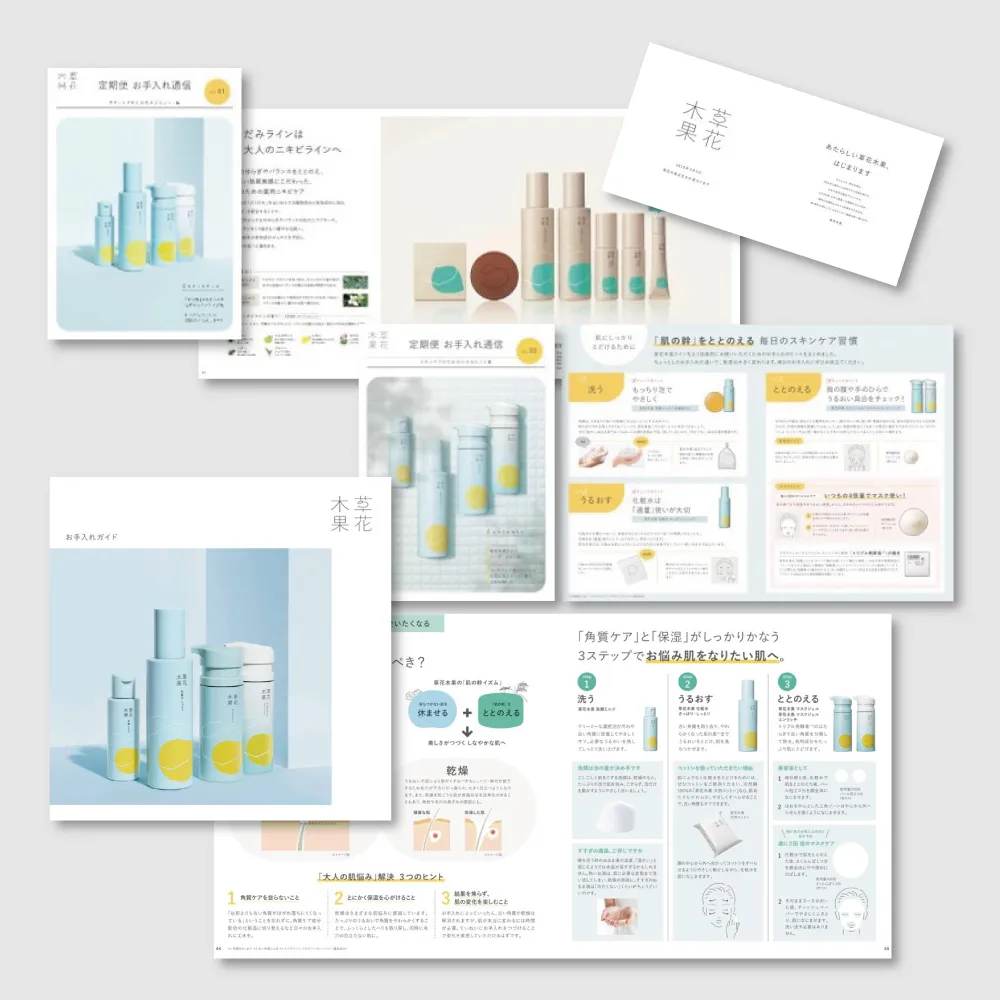 株式会社JIMOSブランドやスキンケアシリーズのコンセプトを伝えるツール一式を制作。成分のやさしさを表現。