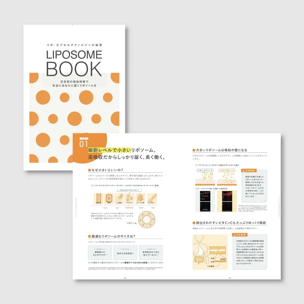 株式会社スピックはじめてのお客様に向けた成分解説ブック。ブランドカラーで世界観を表現。