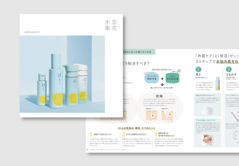 第一三共ヘルスケアダイレクト株式会社(制作当時:株式会社アイム)ブランドへの共感を育てる会報誌を企画・制作。肌状態を知るための分析ツールもあわせて制作。