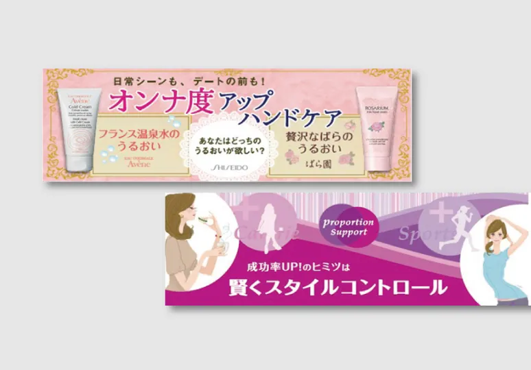 株式会社資生堂お客様の悩み解決を軸にした店頭POPを企画・制作。また、店頭美容部員教育用のマニュアルも制作。
